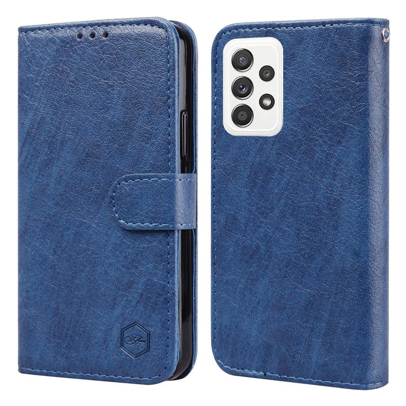 For Samsung Galaxy A52 5G Skin Feeling Oil Leather Texture PU + TPU Phone Case(Dark Blue)