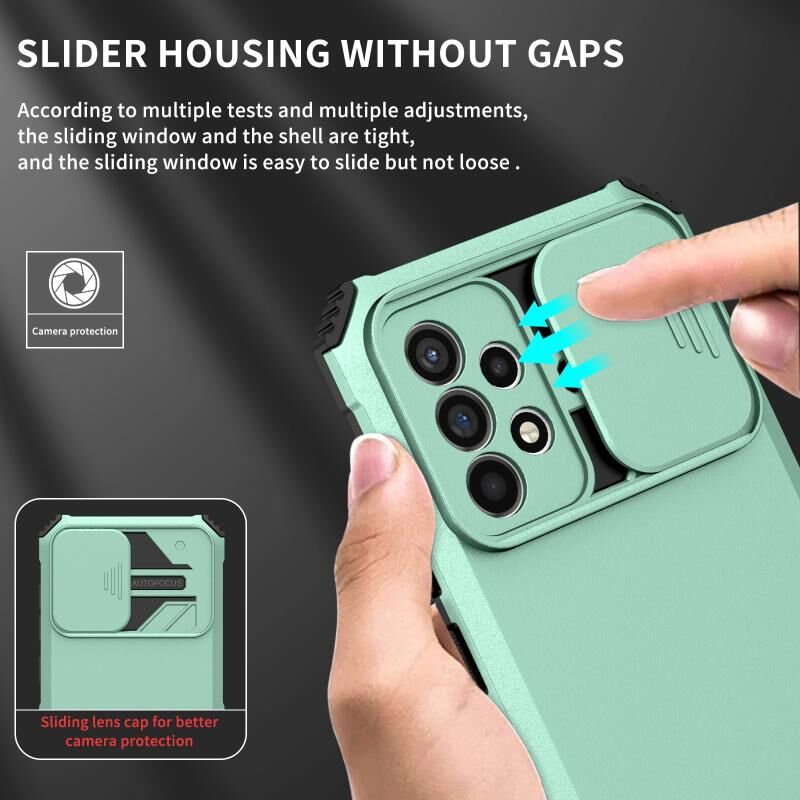Για Samsung Galaxy A52 5G Στερεοσκοπική κάτοχος συρόμενη Camshield θήκη τηλεφώνου (ανοιχτό πράσινο)