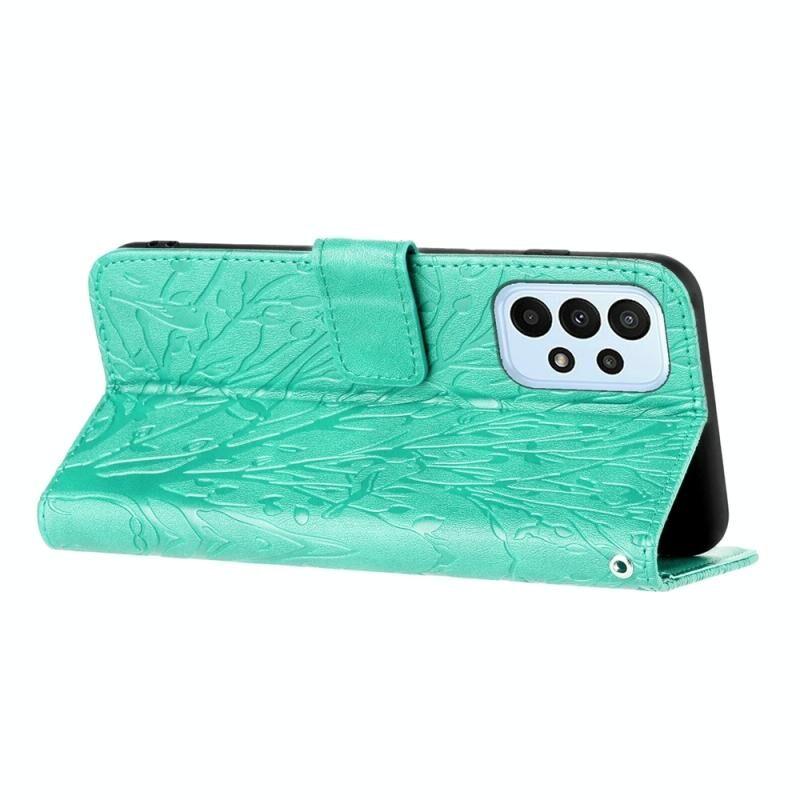 For Samsung Galaxy A52 5G Tree Birds Embossed Pattern Leather Phone Case(Green)