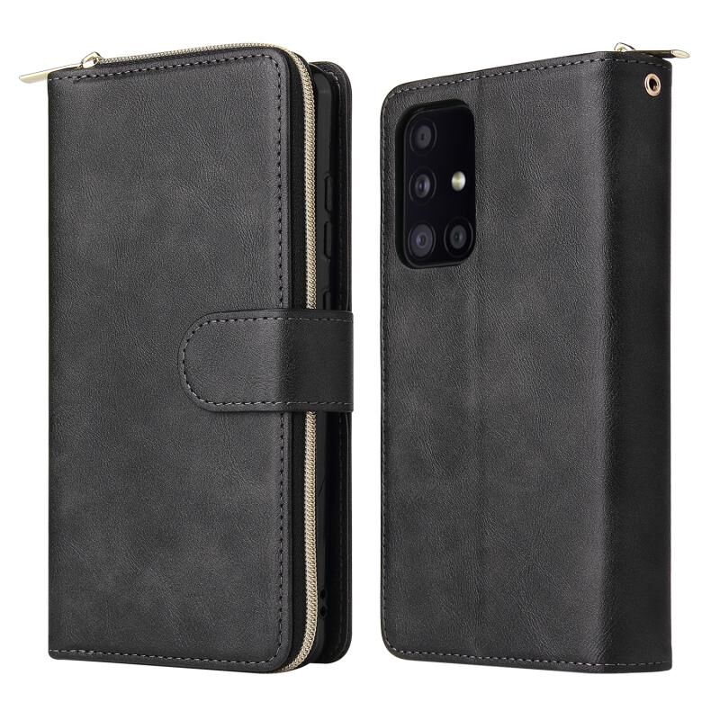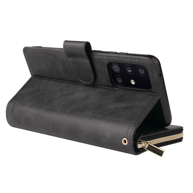 Για Samsung Galaxy A52 5G φερμουάρ τσάντα πορτοφόλι οριζόντια Flip PU δερμάτινη θήκη με θήκη & 9 υποδοχές για κάρτες & πορτοφόλι & κορδόνι & κορνίζα & κορνίζα φωτογραφιών (Μαύρο)