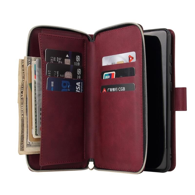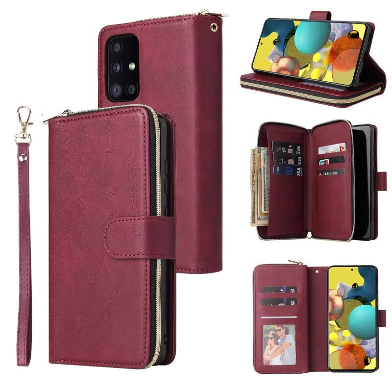 Για Samsung Galaxy A52 5G φερμουάρ τσάντα πορτοφόλι οριζόντια Flip PU δερμάτινη θήκη με θήκη & 9 υποδοχές για κάρτες & πορτοφόλι & κορδόνι & κορνίζα & κορνίζα φωτογραφιών (Κόκκινο κρασί)