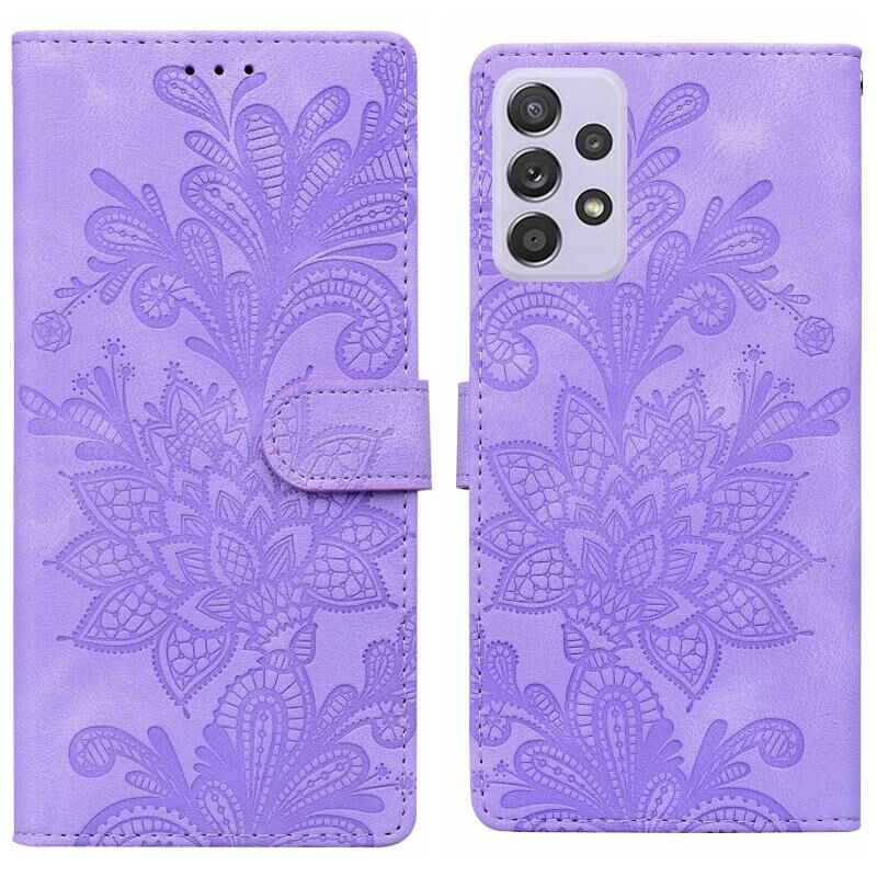Θήκη τηλεφώνου Samsung Galaxy A52 / A52s 5G από PU με δαντελένιο floral ανάγλυφο, μαγνητικό κούμπωμα και λουρί καρπού (Πράσινο)