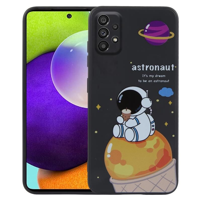 Θήκη σιλικόνης υγρού για Samsung Galaxy A52 / A52s 5G με σχέδιο αστροναύτη και γάλα (Λευκό)