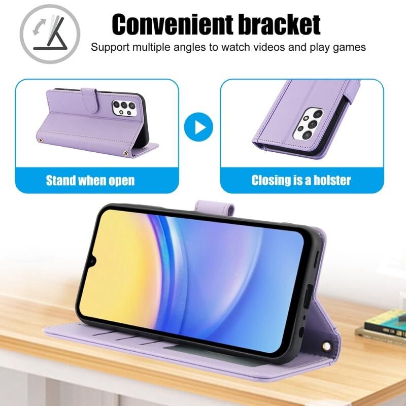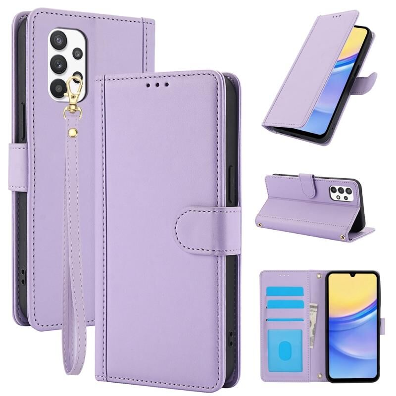 Για Samsung Galaxy A52 / A52s δέρμα αίσθηση καθαρό χρώμα κάρτα υποδοχές δερμάτινη θήκη τηλεφώνου με διπλή κορδόνι (μωβ)