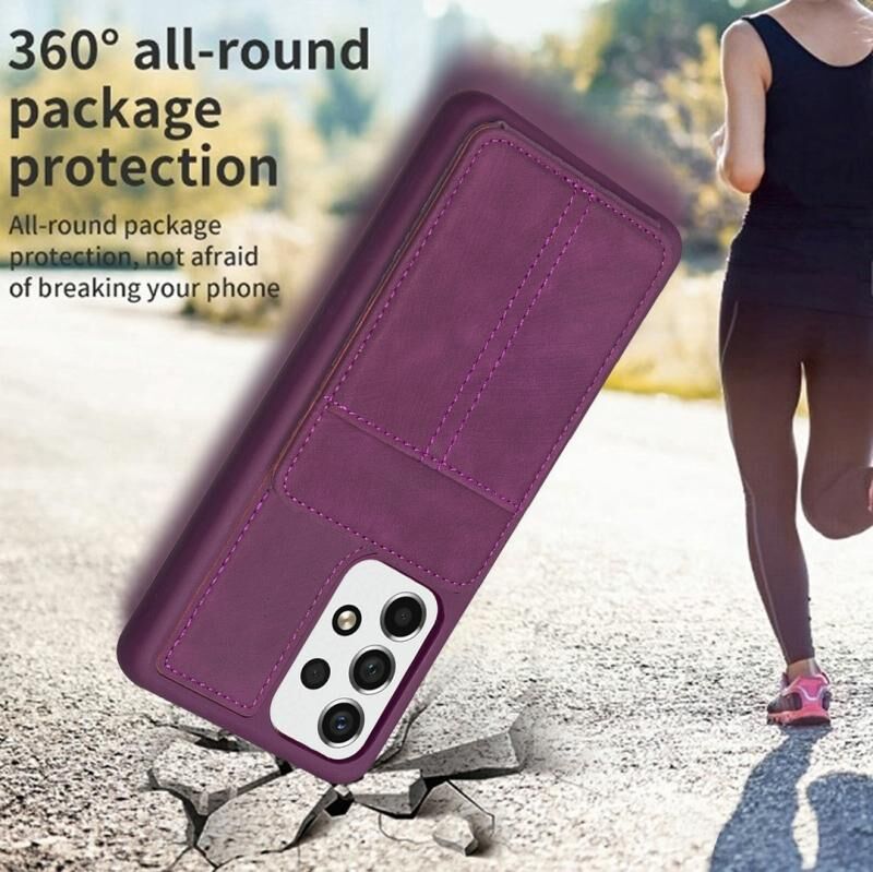 Για Samsung Galaxy A52 BF28 Frosted κάρτα τσάντα υπόθεση τηλεφώνου με θήκη (σκούρο μωβ)