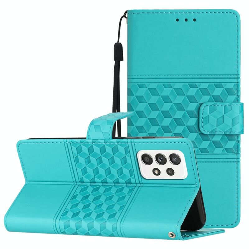 Για Samsung Galaxy A52 Diamond ανάγλυφο δέρμα αίσθηση δέρμα υπόθεση τηλεφώνου με κορδόνι (μπλε)