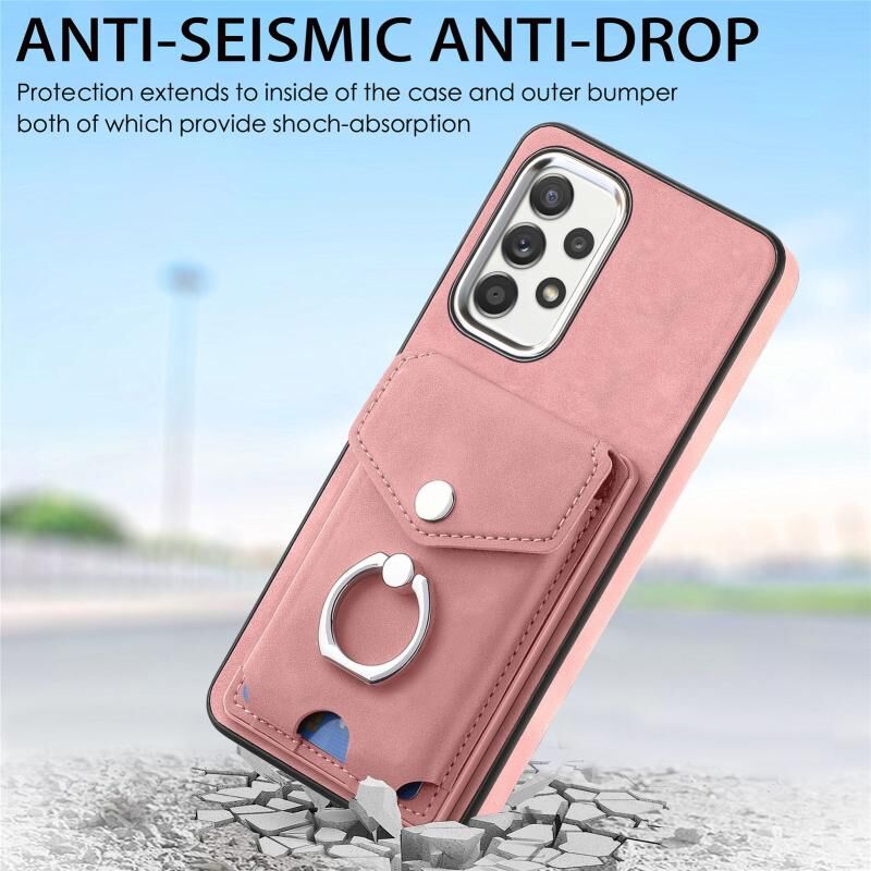 Για το Samsung Galaxy A52 Ηλεκτρολυτική επιμετάλλωση δέρμα αίσθηση δέρμα δαχτυλίδι κάρτα πορτοφόλι υπόθεση τηλεφώνου (ρόζ)