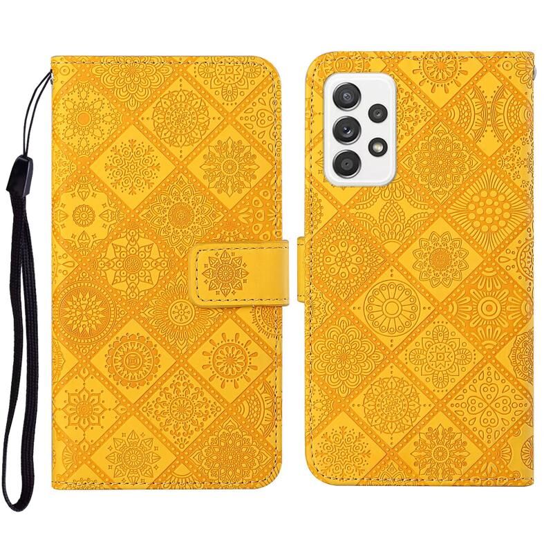 Για Samsung Galaxy A52 Ethnic στυλ ανάγλυφο μοτίβο δερμάτινη θήκη τηλεφώνου (κίτρινο)
