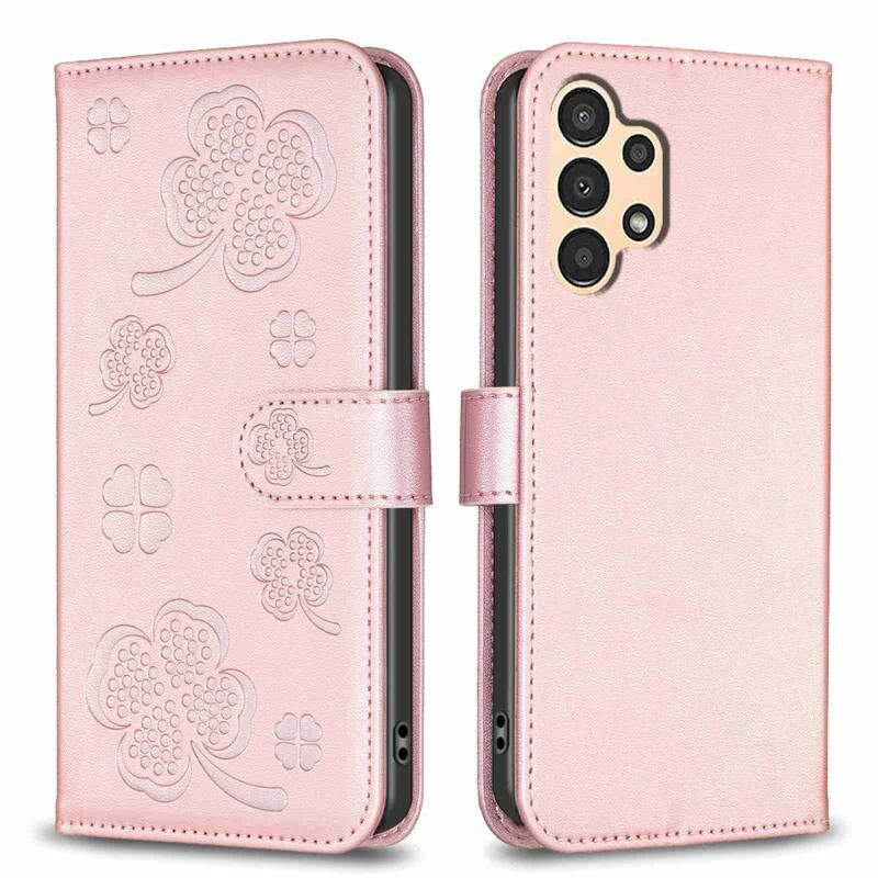 Για Samsung Galaxy A52 τετράφυλλο ανάγλυφο δέρμα υπόθεση τηλεφώνου (ρόζ)