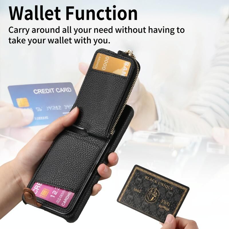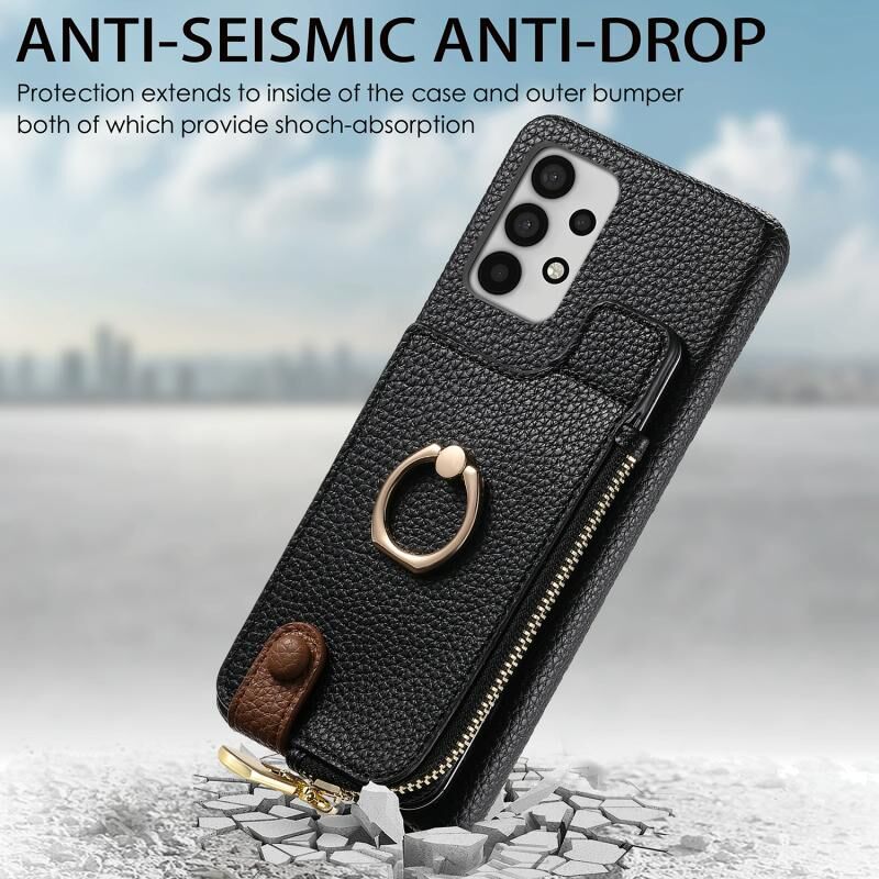 Για Samsung Galaxy A52 Litchi δέρμα λάδι Edge Ring φερμουάρ πορτοφόλι πίσω θήκη τηλεφώνου (μαύρο)