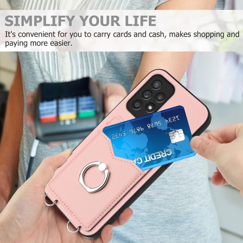 Για Samsung Galaxy A52 R20 Δαχτυλίδι Κάτοχος κάρτας θήκη τηλεφώνου (ροζ)