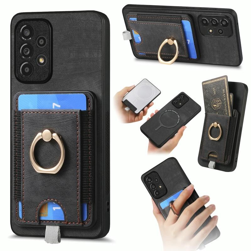 Για Samsung Galaxy A52 Retro Splitable μαγνητική κάρτα τσάντα τσάντα δέρμα υπόθεση τηλεφώνου (μαύρο)