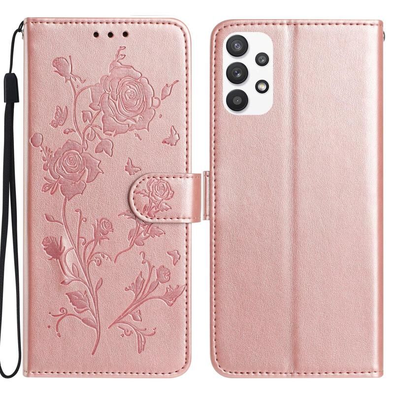 Θήκη τηλεφώνου δερμάτινη με ανάγλυφο σχέδιο ροζ άνθους για Samsung Galaxy A52 (Ροζ Χρυσό)