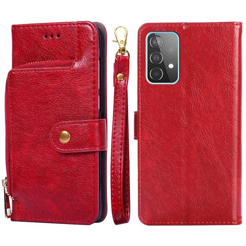 Για Samsung Galaxy A52s 5G φερμουάρ τσάντα οριζόντια Flip δερμάτινη θήκη τηλεφώνου με θήκη & υποδοχές για κάρτες & κορδόνι (κόκκινο)