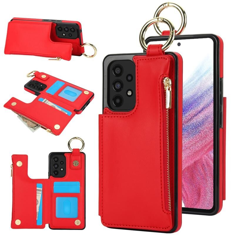 Για Samsung Galaxy A53 4G / 5G RFlD Anti-theft Διπλό πόρπη δαχτυλίδι φερμουάρ τηλέφωνο υπόθεση κάρτα (κόκκινο)