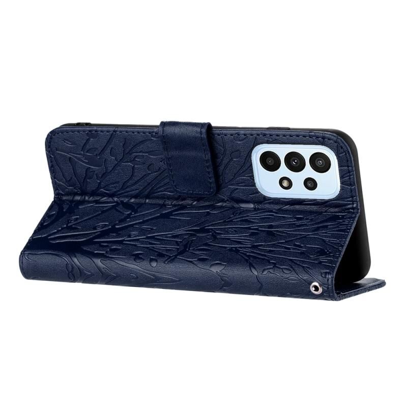 For Samsung Galaxy A53 4G / 5G Tree Birds Embossed Pattern Leather Phone Case(Blue)