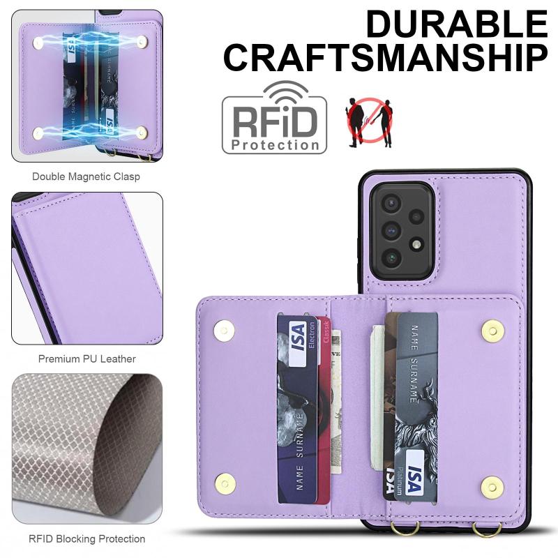 For Samsung Galaxy A53 5G / 4G Crossbody Dual-buckle Wallet RFID Back Leather Phone Case(Light Purple)
