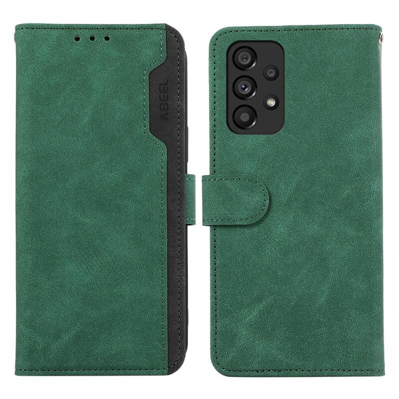 Θήκη τηλεφώνου Samsung Galaxy A53 5G ABEEL με μαγνητικό κλείσιμο, δερμάτινη, με χρωματικούς συνδυασμούς και προστασία RFID (Ροζ-Κυανό)