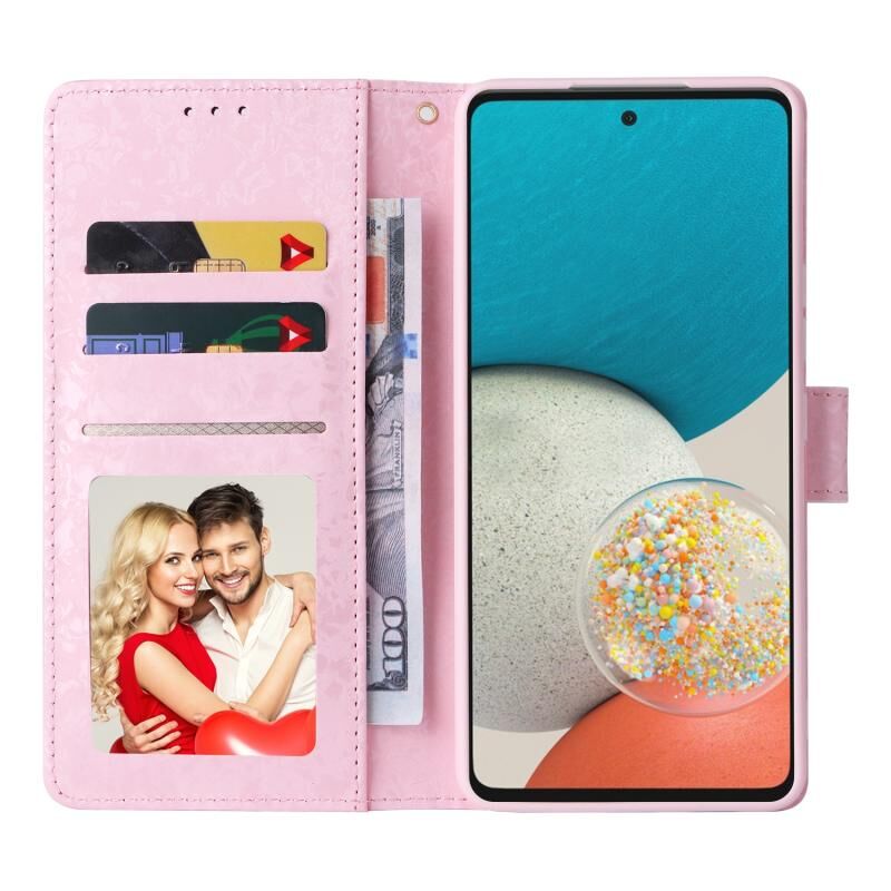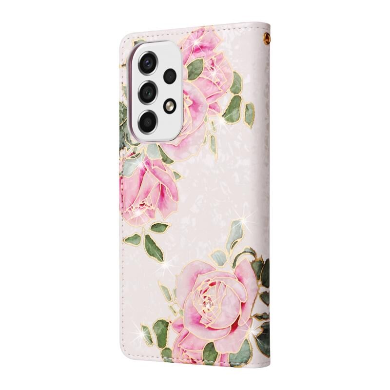 Θήκη δερμάτινη RFID με σχέδιο βαφής μπρονζέ για Samsung Galaxy A53 5G (Ροζ Λουλούδι)