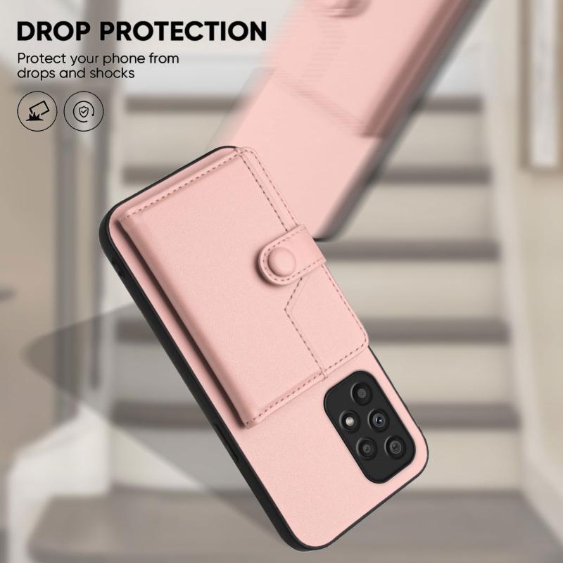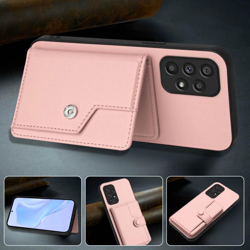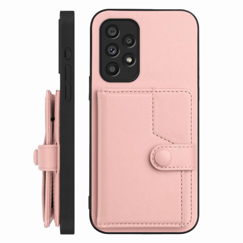 For Samsung Galaxy A53 5G Button Card Bag RFID Anti-theft Phone Case(Pink)