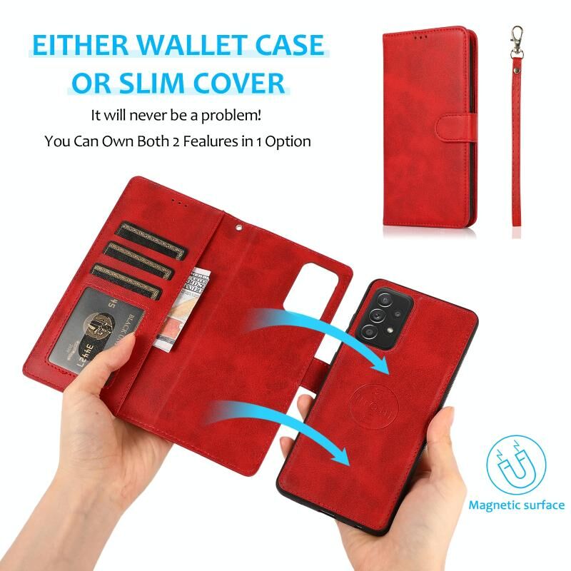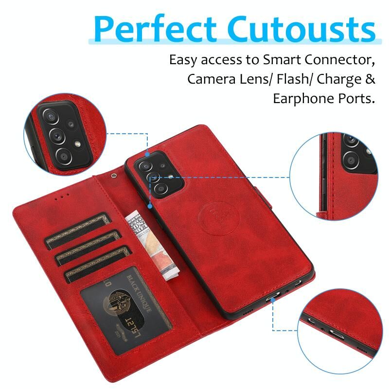 Για Samsung Galaxy A53 5G Calf Texture 2 σε 1 Αποσπώμενο μαγνητικό πίσω κάλυμμα δερμάτινη θήκη (Κόκκινο)