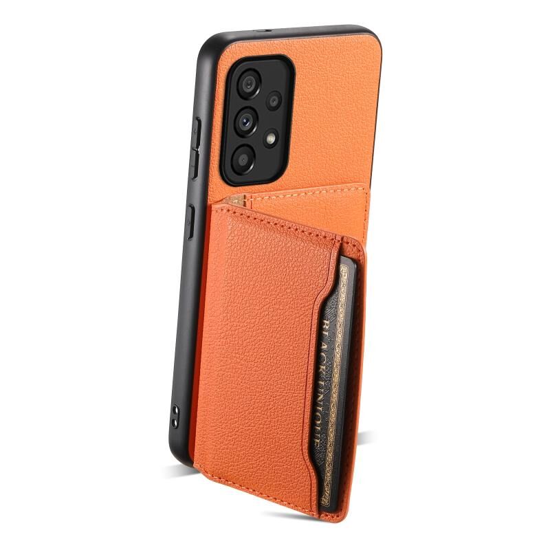 Θήκη κινητού τηλεφώνου Samsung Galaxy A53 5G με σχέδιο τσάντας κάρτας υφής μοσχαριού, πλήρης κάλυψη (Πορτοκαλί)