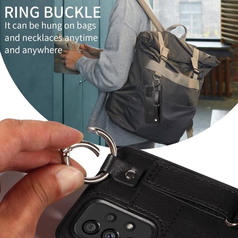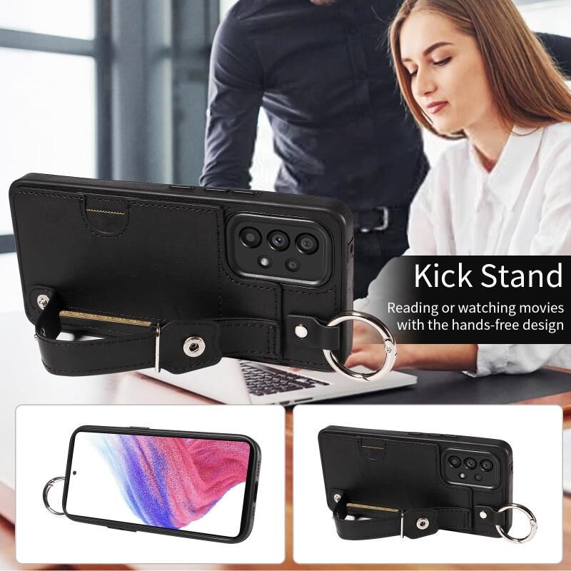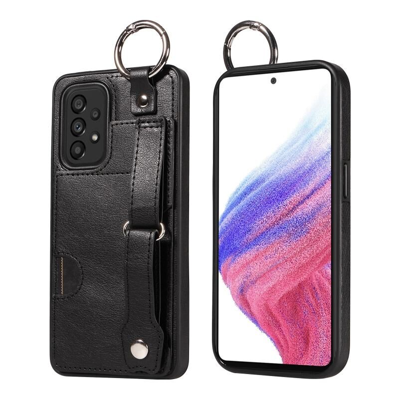 Για Samsung Galaxy A53 5G Calf υφή καρπού κάρτα Slot Ring υπόθεση τηλεφώνου (μαύρο)
