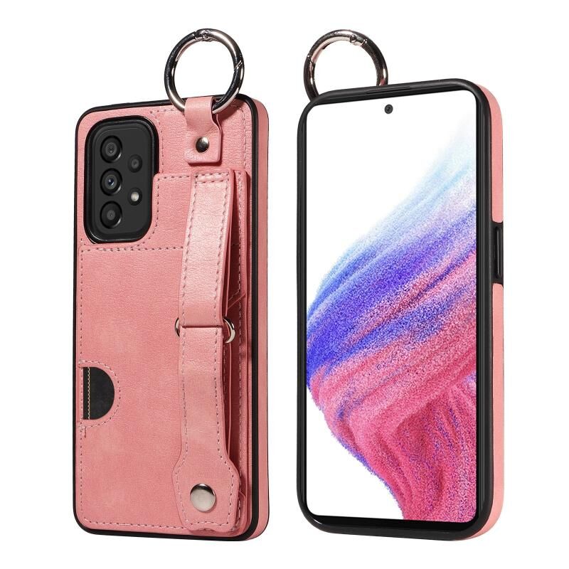 Για Samsung Galaxy A53 5G Calf υφή καρπού κάρτα Slot Ring υπόθεση τηλεφώνου (ροζ)