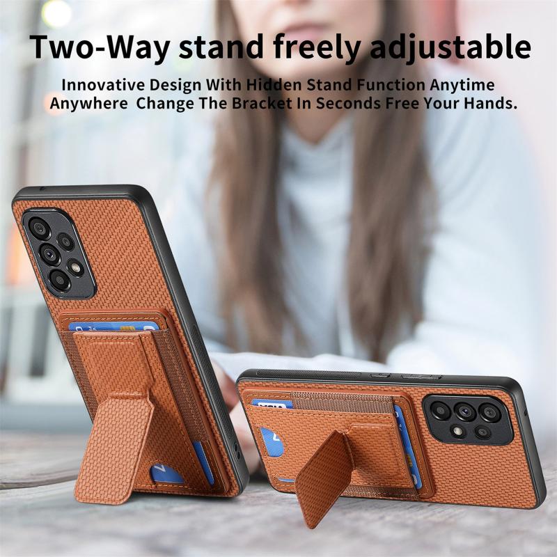 For Samsung Galaxy A53 5G Carbon Fiber Fold Stand Elastic Card Bag Phone Case(Brown)