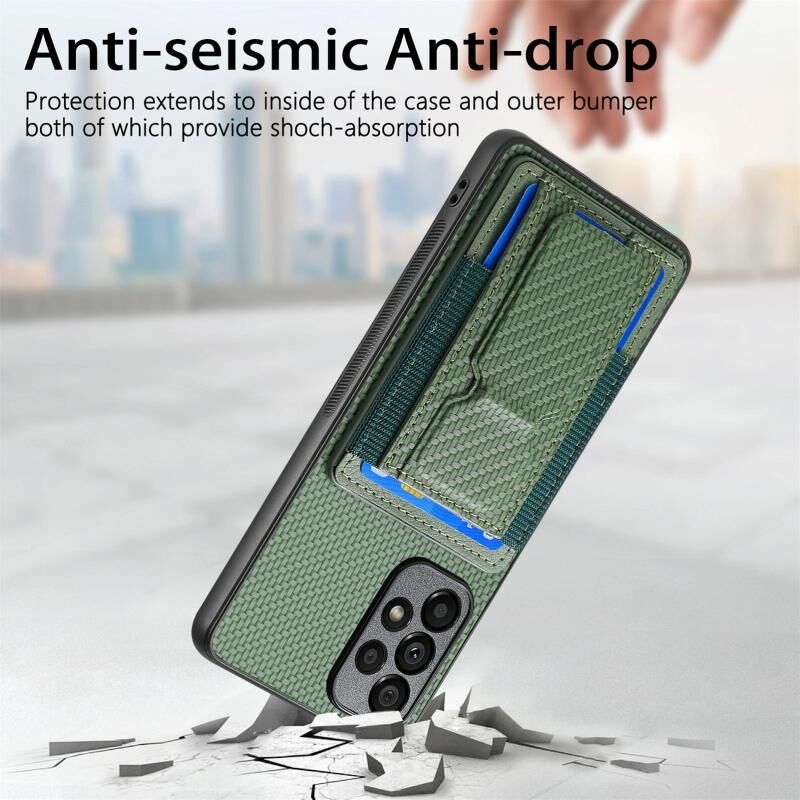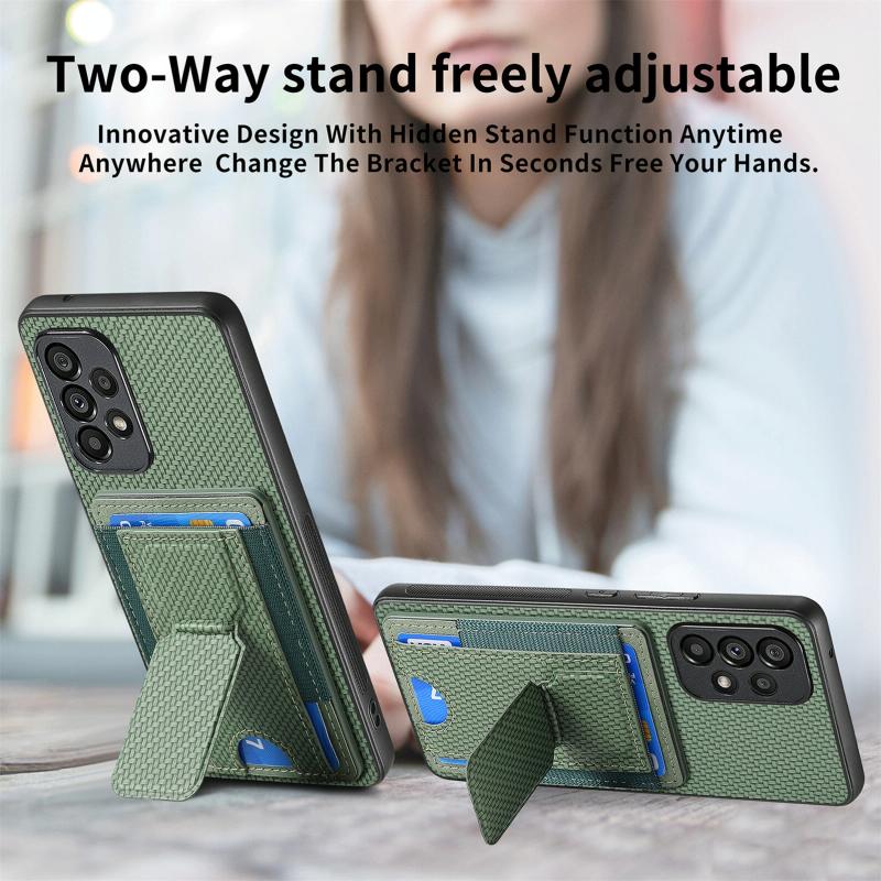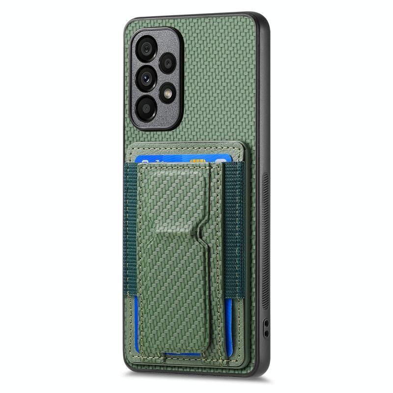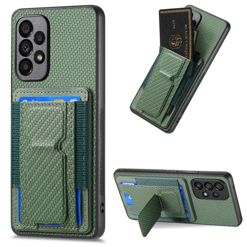 For Samsung Galaxy A53 5G Carbon Fiber Fold Stand Elastic Card Bag Phone Case(Green)