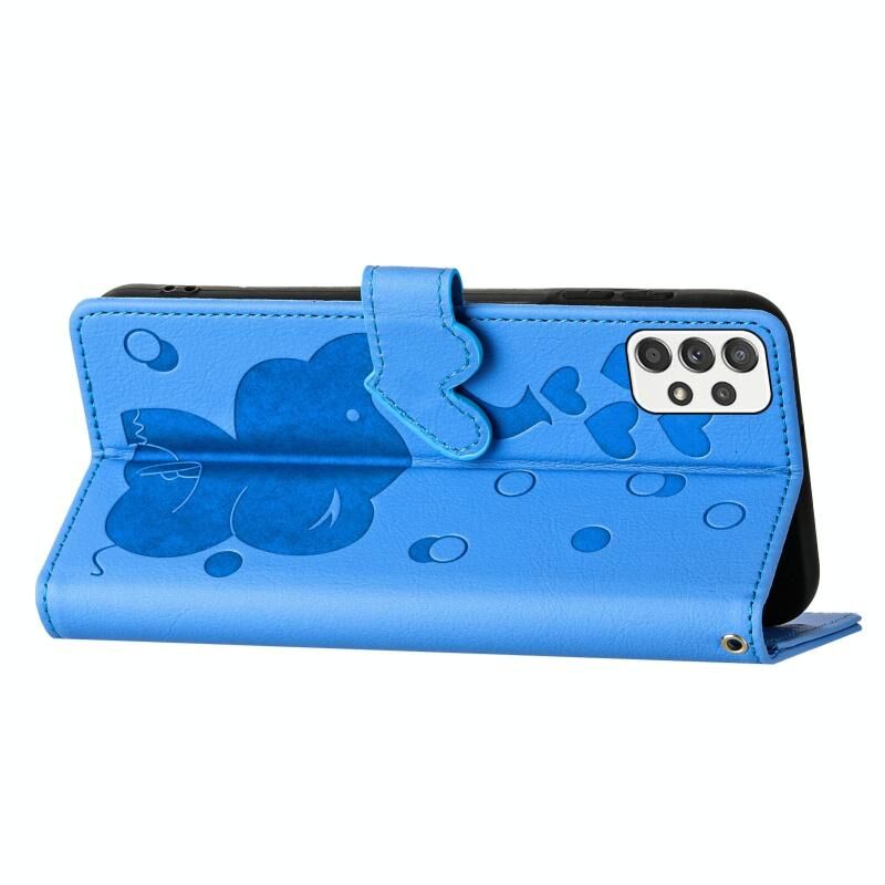 Θήκη τηλεφώνου Samsung Galaxy A53 5G από δέρμα με ανάγλυφο σχέδιο καρτούν ελέφαντα (Μπλε)