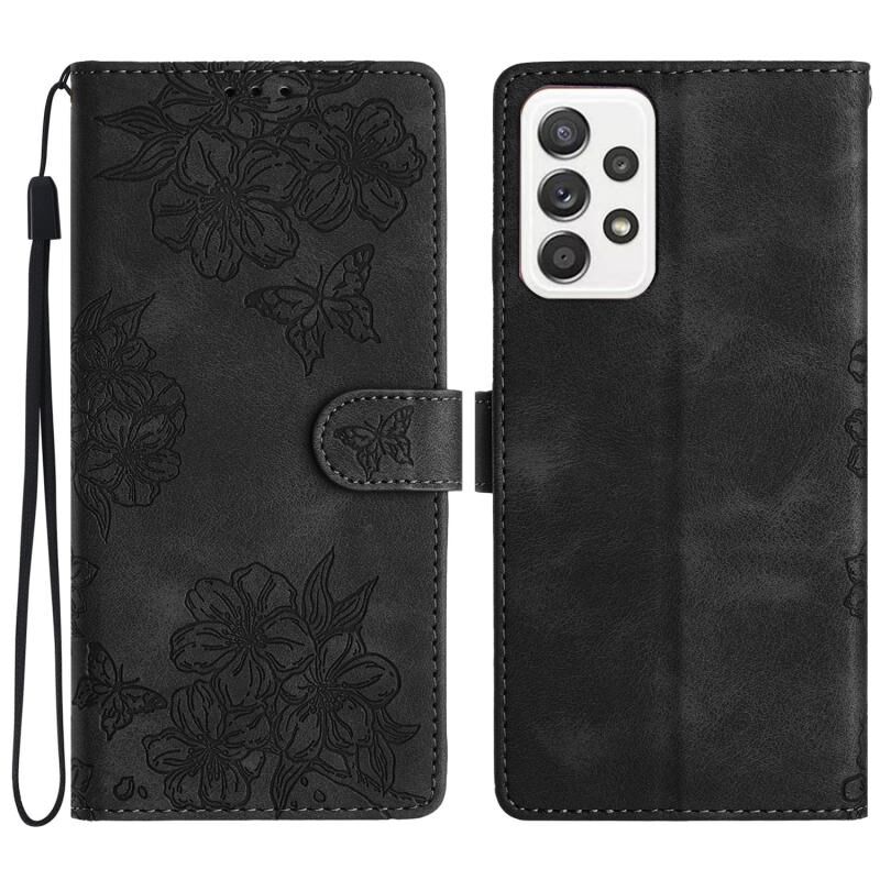 Θήκη τηλεφώνου Samsung Galaxy A53 5G Cherry Blossom Butterfly με ανάγλυφη υφή PU (Κόκκινη)