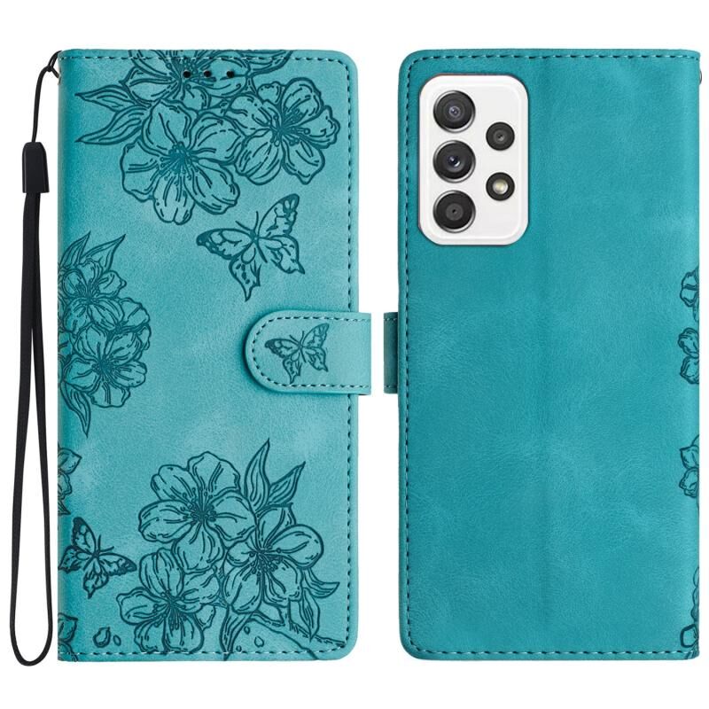 Θήκη τηλεφώνου Samsung Galaxy A53 5G Cherry Blossom Butterfly με ανάγλυφη υφή PU (Κόκκινη)
