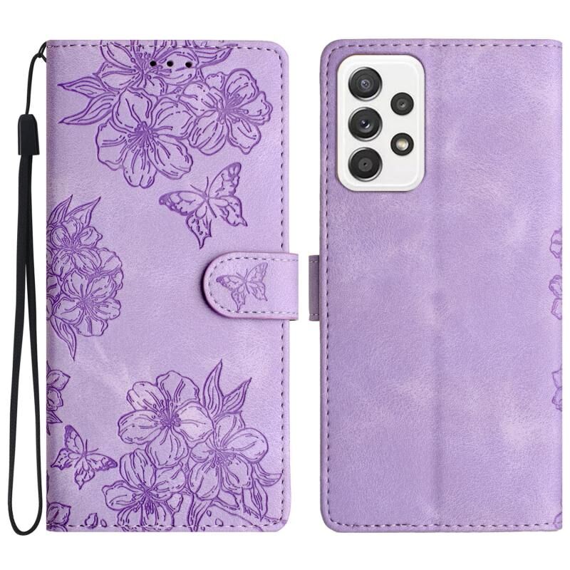 Θήκη τηλεφώνου Samsung Galaxy A53 5G Cherry Blossom Butterfly με ανάγλυφη υφή PU (Κόκκινη)