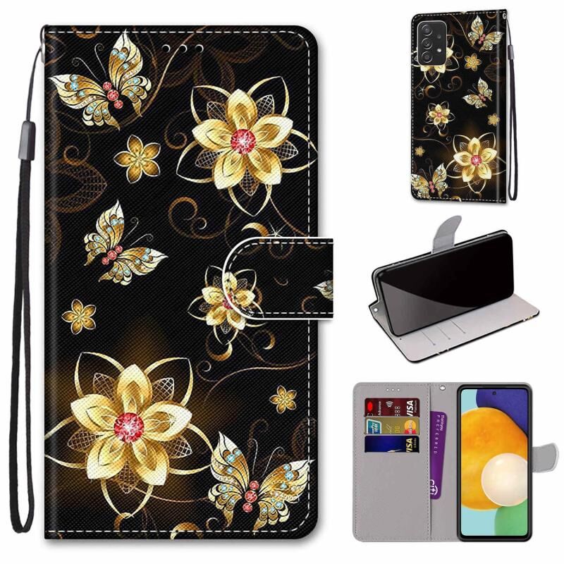 Θήκη τηλεφώνου Samsung Galaxy A53 5G από δέρμα με οριζόντιο άνοιγμα, πολύχρωμο σχέδιο με ανάγλυφη υφή, με βάση, θήκες καρτών, πορτοφόλι και κορδόνι (Ροζ Λουλούδια - Γέφυρα του Πύργου).