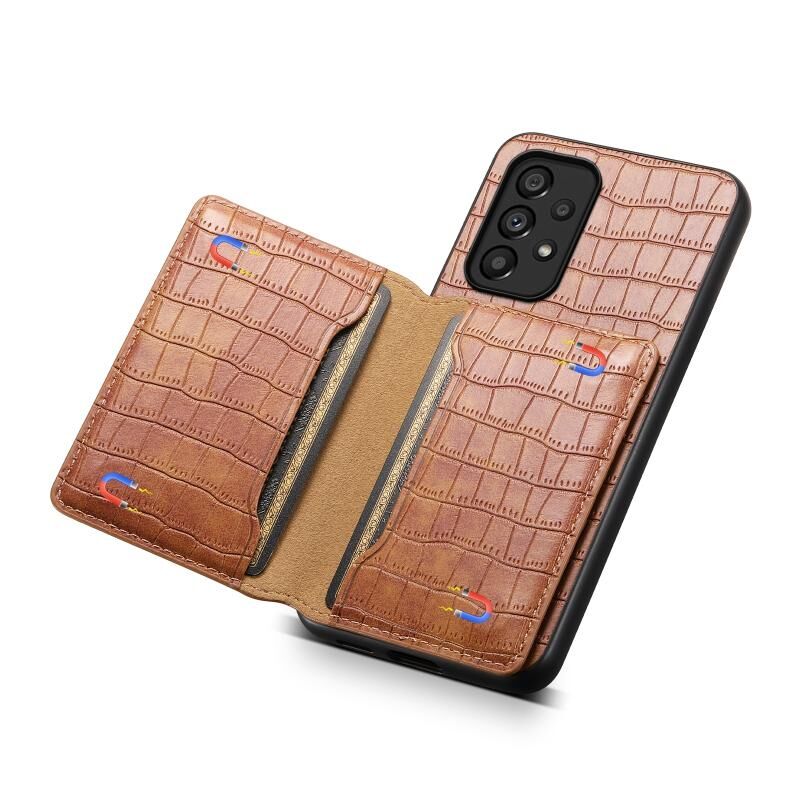 Θήκη κινητού τηλεφώνου πλήρους κάλυψης με σχέδιο τσάντας κάρτας και υφή κροκόδειλου για Samsung Galaxy A53 5G (Καφέ)