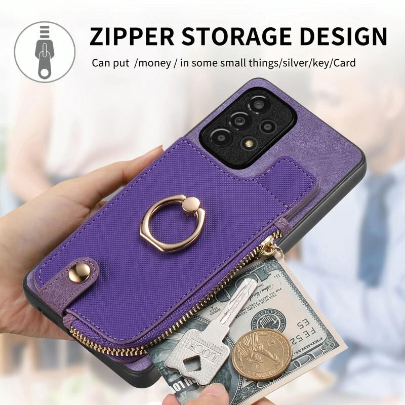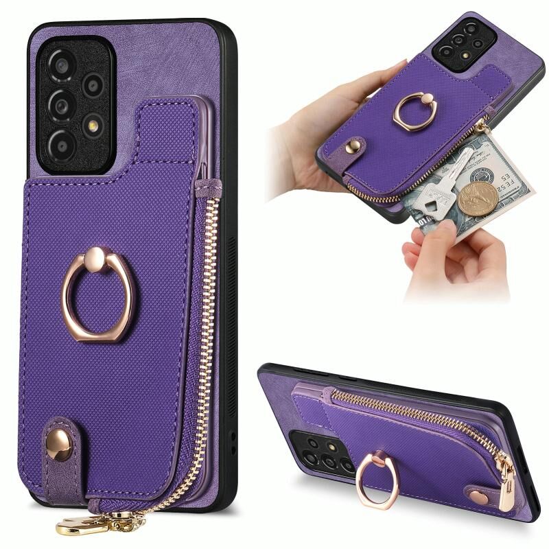 Για Samsung Galaxy A53 5G Cross Δερμάτινο δαχτυλίδι κάθετη φερμουάρ πορτοφόλι πίσω υπόθεση τηλεφώνου (μωβ)