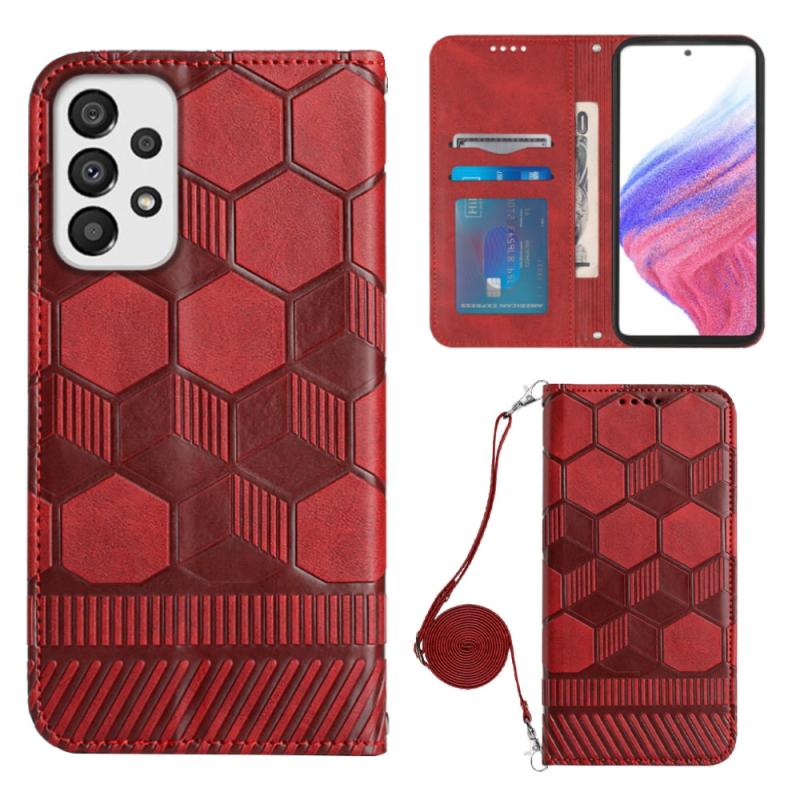 Θήκη κινητού τηλεφώνου Samsung Galaxy A53 5G, διαγώνια, με υφή ποδοσφαίρου, μαγνητική, από PU δέρμα (Κόκκινο)