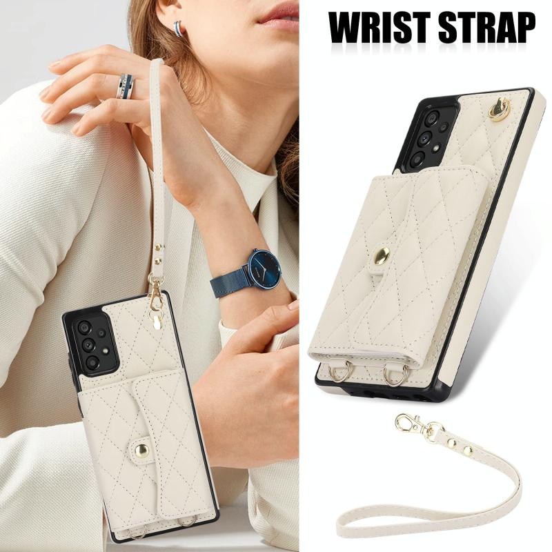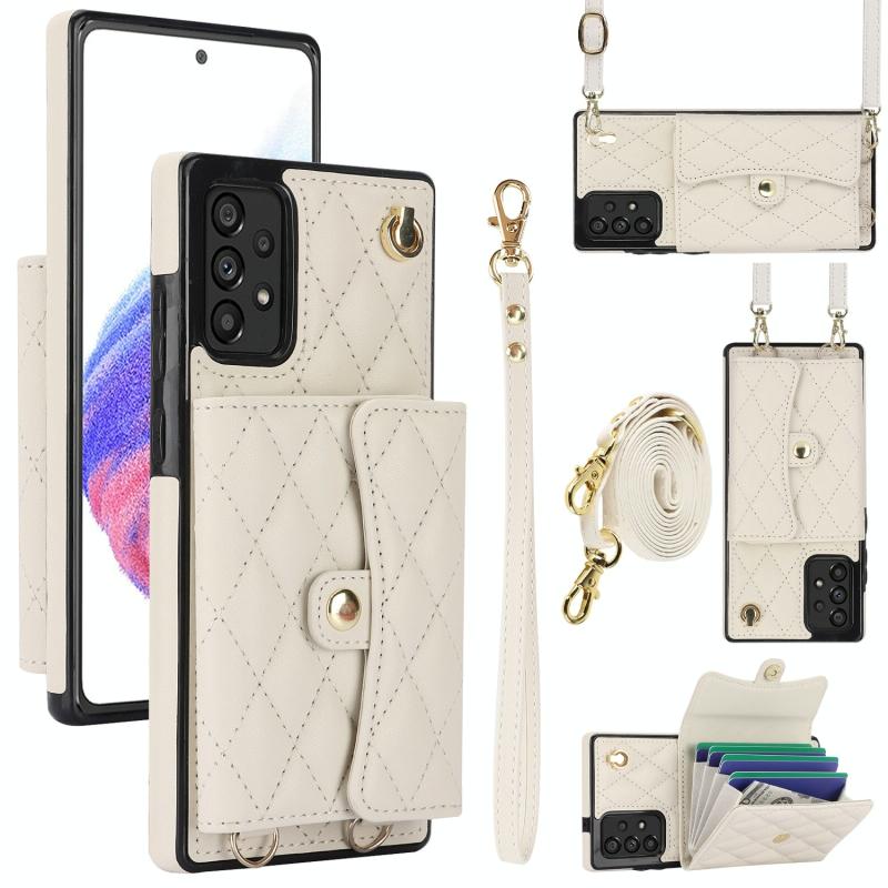 For Samsung Galaxy A53 5G Crossbody Rhombic Horizontal Wallet Leather Phone Case(White)