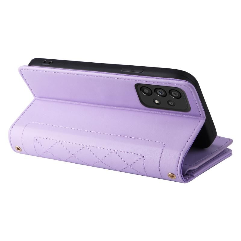 Για Samsung Galaxy A53 5G Crossbody φερμουάρ πορτοφόλι ρόμβος δερμάτινη θήκη τηλεφώνου (Μωβ)