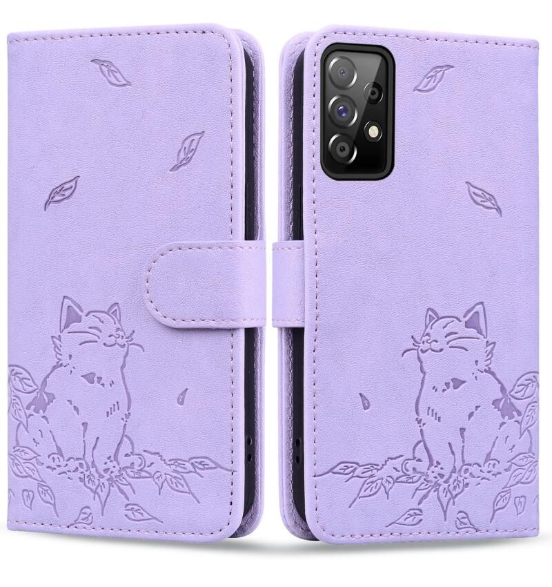Θήκη τηλεφώνου από δέρμα με ανάγλυφο χαριτωμένο γατάκι για Samsung Galaxy A53 5G (Πράσινο)