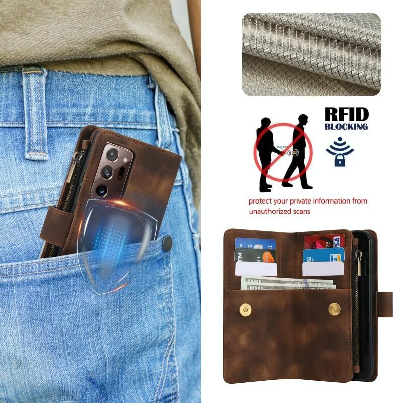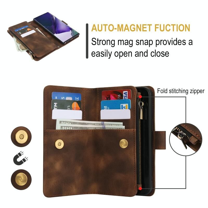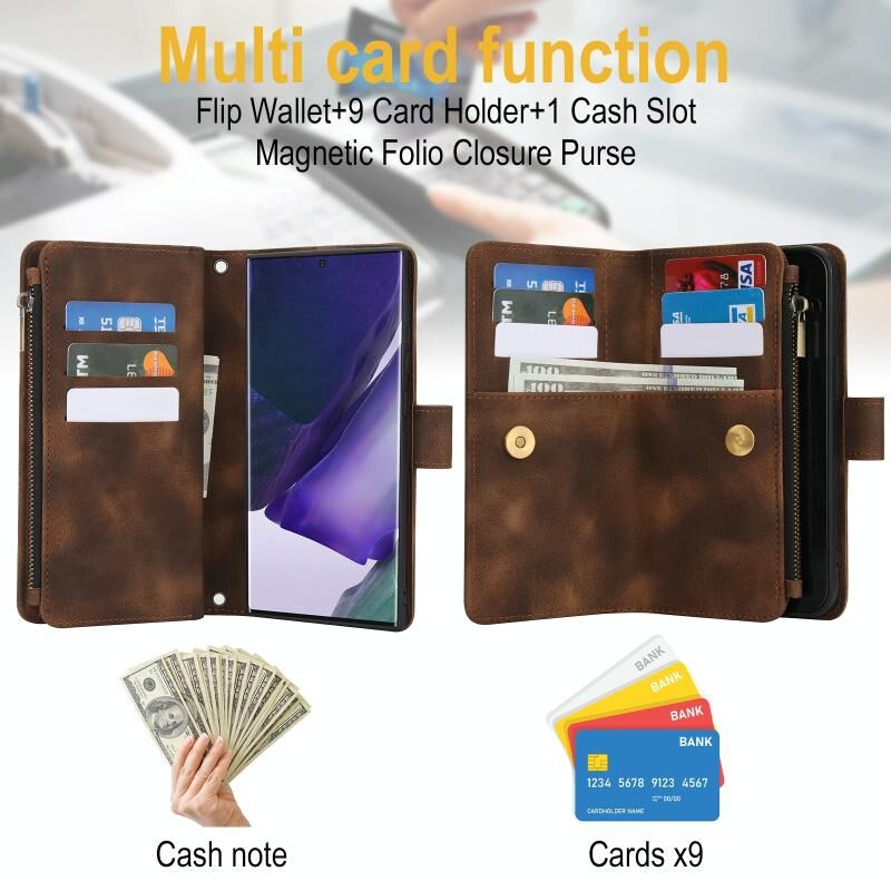 2. Λειτουργία πορτοφολιού πολλαπλών καρτών: 9 υποδοχές για κάρτες και 1 θήκη μετρητών με φερμουάρ για να αποθηκεύετε τις πιστωτικές σας κάρτες, μετρητά ή μικρά χαρτονομίσματα για τις καθημερινές σας ανάγκες.