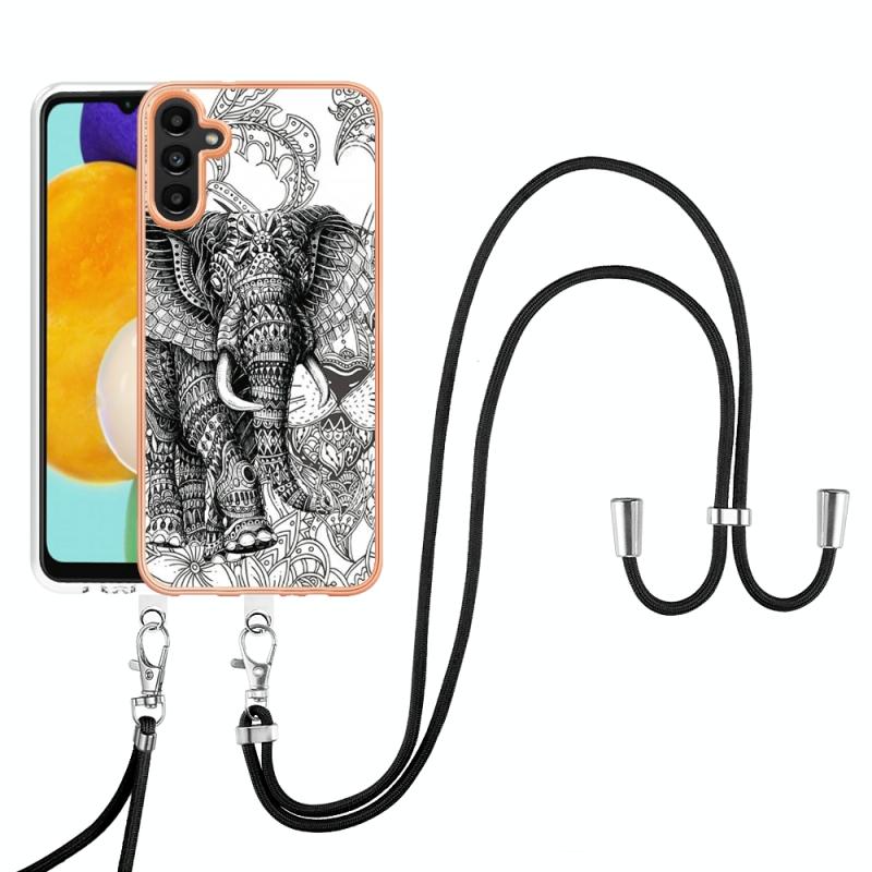 For Samsung Galaxy A53 5G Electroplating Dual-side IMD Phone Case with Lanyard(Totem Elephant)