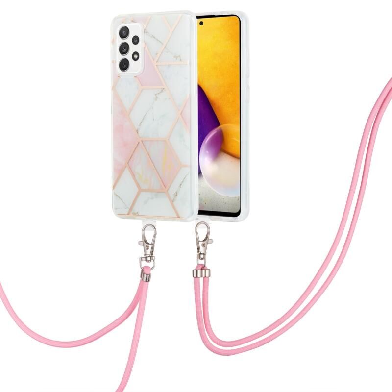 Θήκη κινητού τηλεφώνου Samsung Galaxy A53 5G με γαλβανισμό, συνδυασμό μαρμάρου και TPU με κορδόνι (Σκούρο Μωβ)