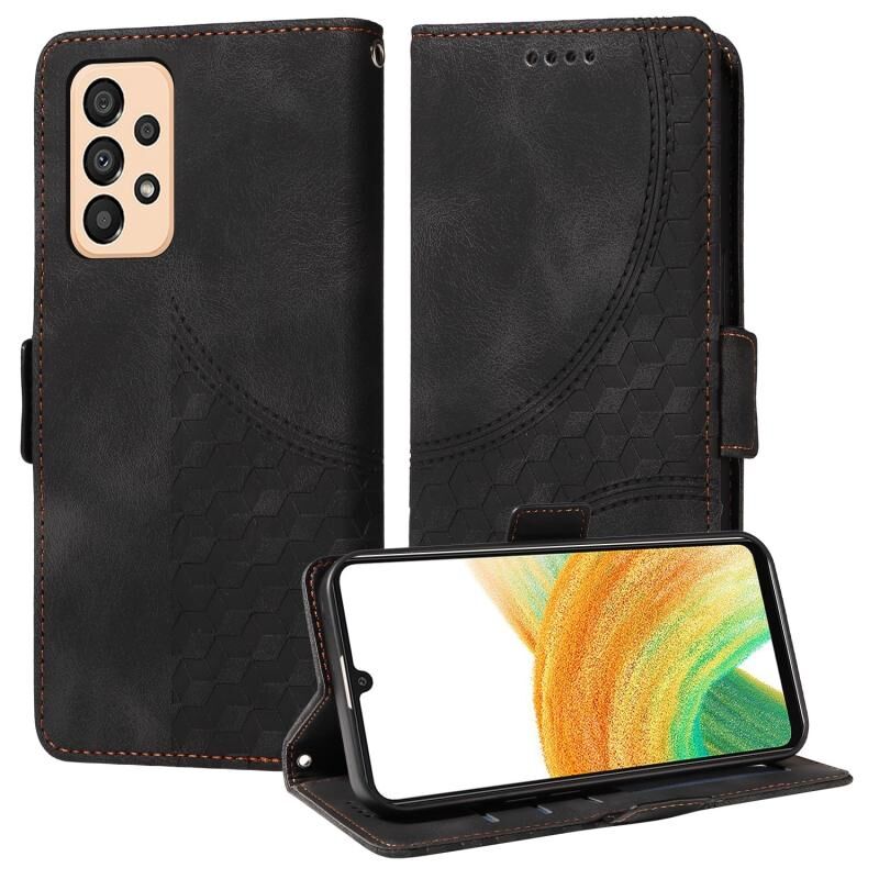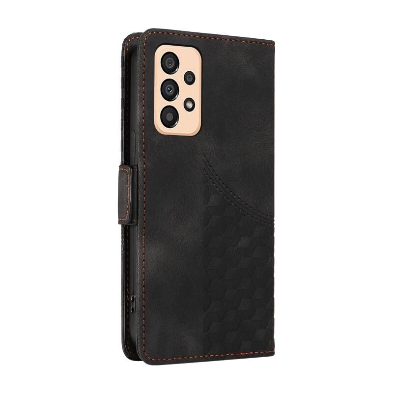 Για Samsung Galaxy A53 5G ανάγλυφο ρόμβος αστερόεσσα δερμάτινη θήκη τηλεφώνου (Μαύρο)