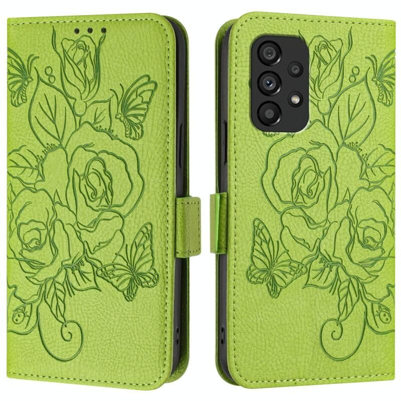 Για Samsung Galaxy A53 5G ανάγλυφο Rose RFID Anti-theft δερμάτινη θήκη τηλεφώνου (πράσινο)