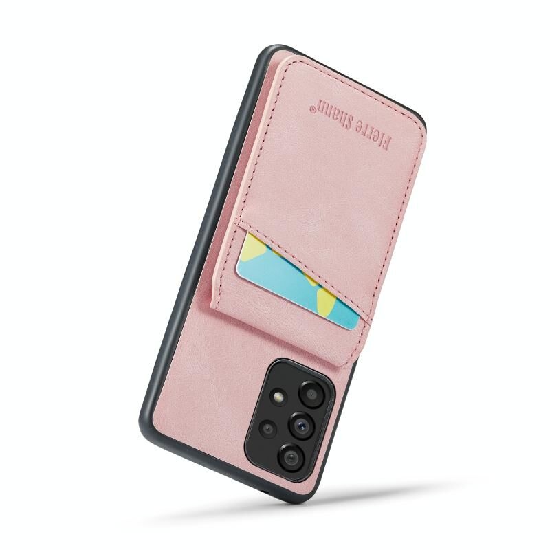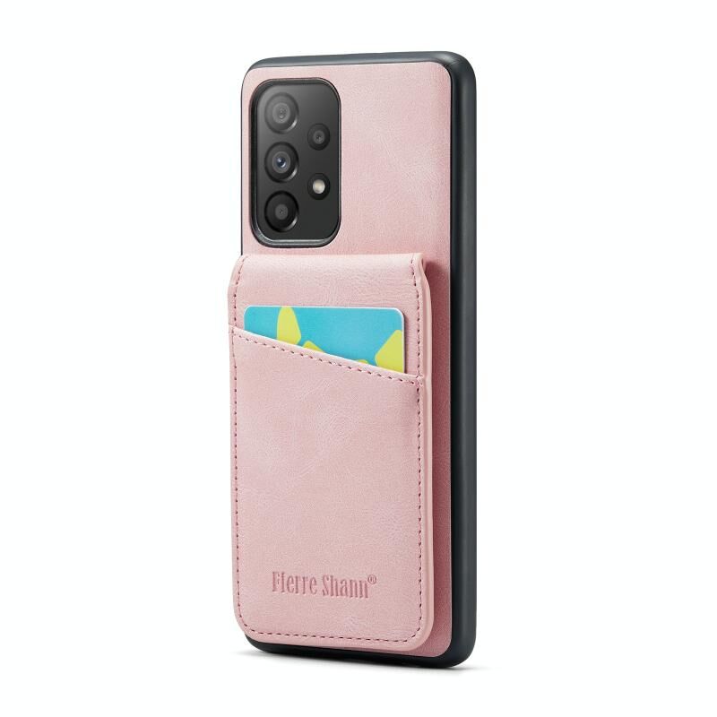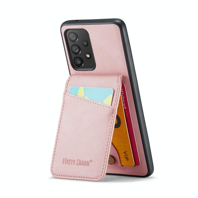 Για Samsung Galaxy A53 5G Fierre Shann Crazy Horse κάρτα κάτοχος κάτοχος πίσω κάλυμμα PU υπόθεση τηλεφώνου (ροζ) (FIERRE SHANN)