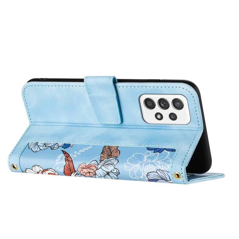 Θήκη τηλεφώνου Samsung Galaxy A53 5G από δέρμα με λουλουδάτο σχέδιο και κορδόνι (Ανοιχτό μπλε)