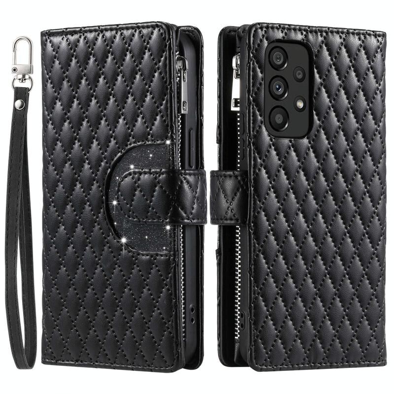 Για Samsung Galaxy A53 5G Glitter πλέγμα φερμουάρ πορτοφόλι δερμάτινη θήκη τηλεφώνου (Μαύρο)