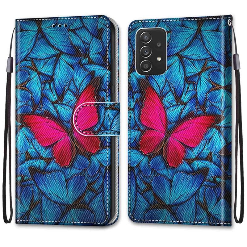 Θήκη τηλεφώνου Samsung Galaxy A53 5G Global με πολύχρωμο σχέδιο, υφή σταυρού, οριζόντια αναδίπλωση, από δερματίνη PU με βάση στήριξης, θήκες για κάρτες, πορτοφόλι & κορδόνι (Πολύχρωμη στρώση (Ροζ Πράσινες Βελόνες))